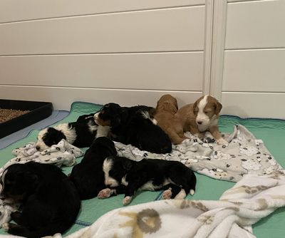 Our puppies are born into a healthy, loving family home. Both parents are second gen bernedoodles with wonderful temperaments. Each puppy will be fully tested and guaranteed.